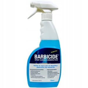 Sposób użycia: Wystarczy spryskać powierzchnię preparatem BARBICIDE i odczekać wymagany czas kontaktu preparatu z powierzchnią ). Dla usunięcia z powierzchni mechanicznych zabrudzeń poleca się Chusteczki Do Dezynfekcji """"Barbicide Wipes"""", a następnie spryskanie powierzchni Sprayem.